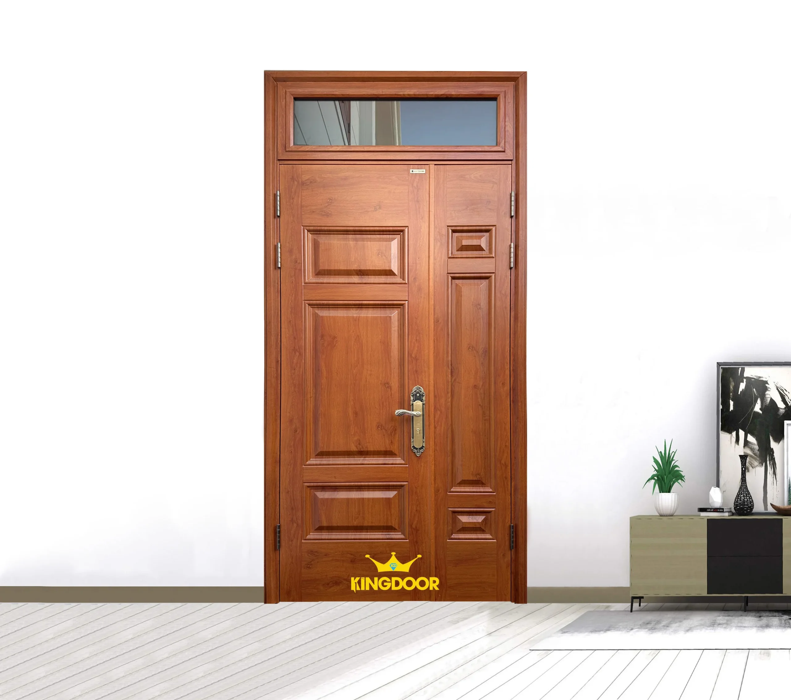 Cửa thép vân gỗ 4 cánh lệch