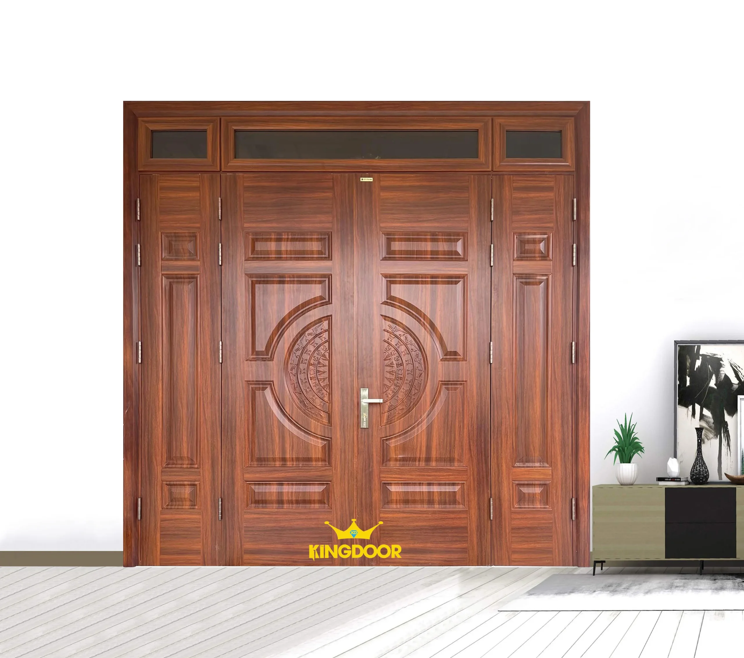 Cửa thép vân gỗ 4 cánh lệch
